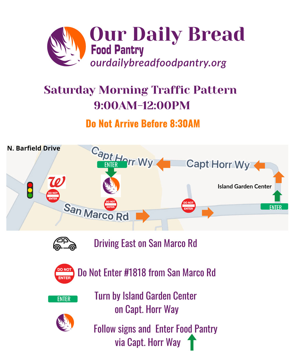 - weekly Saturday drive-through food pantry on 1818 San Marco Road